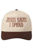 Spread the good word (and style) with our Jesus Saves I Spend Hat. This 5-panel, two-tone trucker hat features a playful brown embroidery that reads "Jesus Saves I Spent". Made from 100% cotton canvas, it's both comfortable and adjustable with an easy snap back.