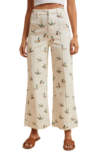 Perfect if you’re searching for duck print denim, women’s printed jeans, or statement cropped wide leg jeans that still feel neutral and versatile.